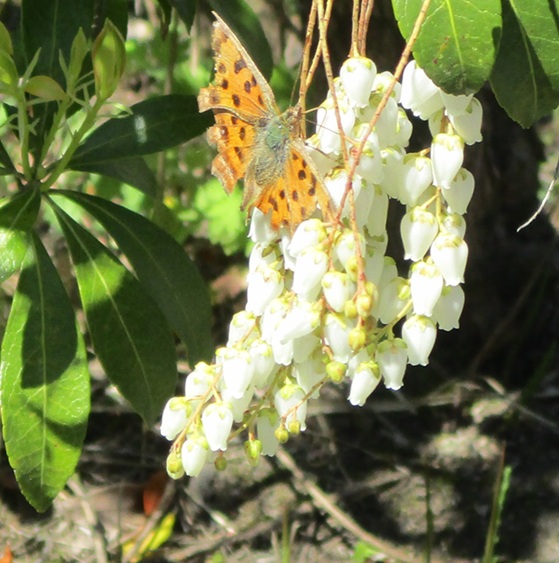 キタテハ 早春を彩る花馬酔木(アセビ)に 毒に注意
