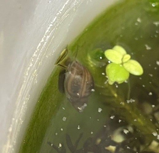 サカマキガイ 殻の巻く方向が逆 水槽内