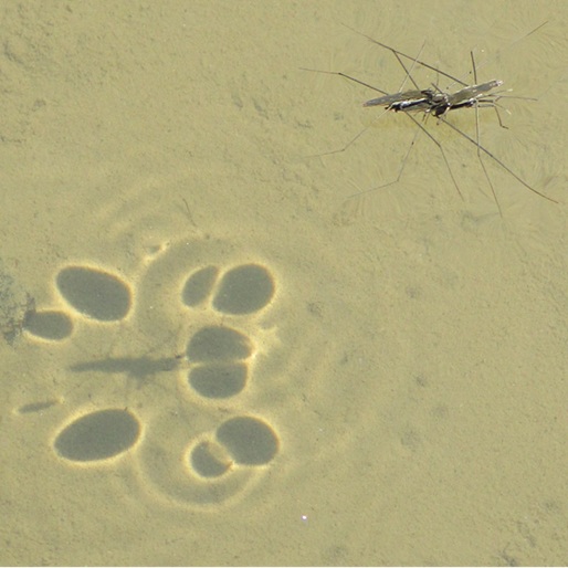 ヒメアメンボ 水面をスイスイ 底に油面の影を映す